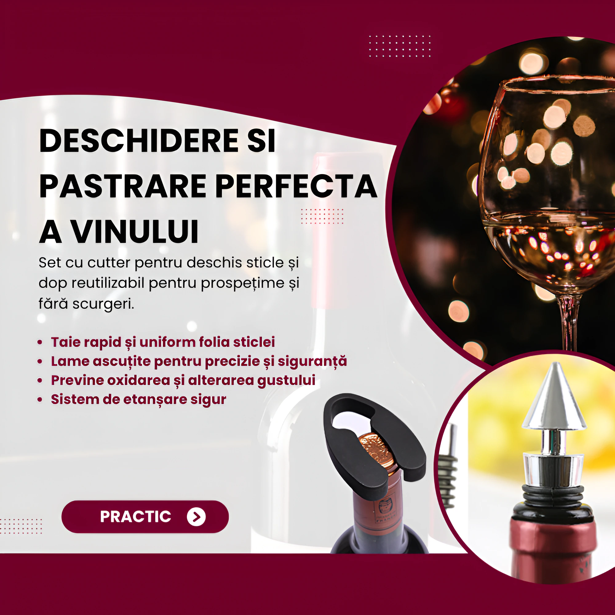 - Aplicati dopul metalic dupa servire pentru a pastra aroma si prospetimea vinului.