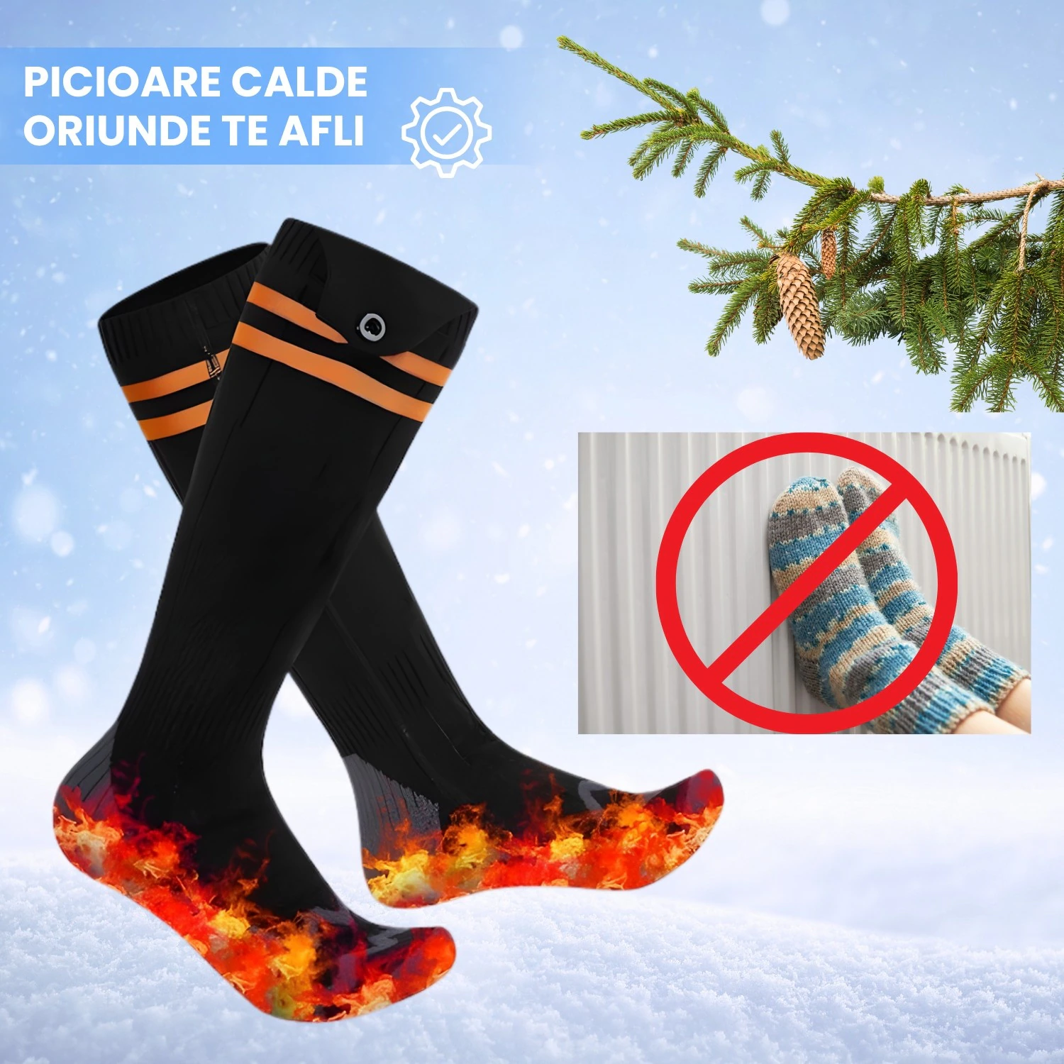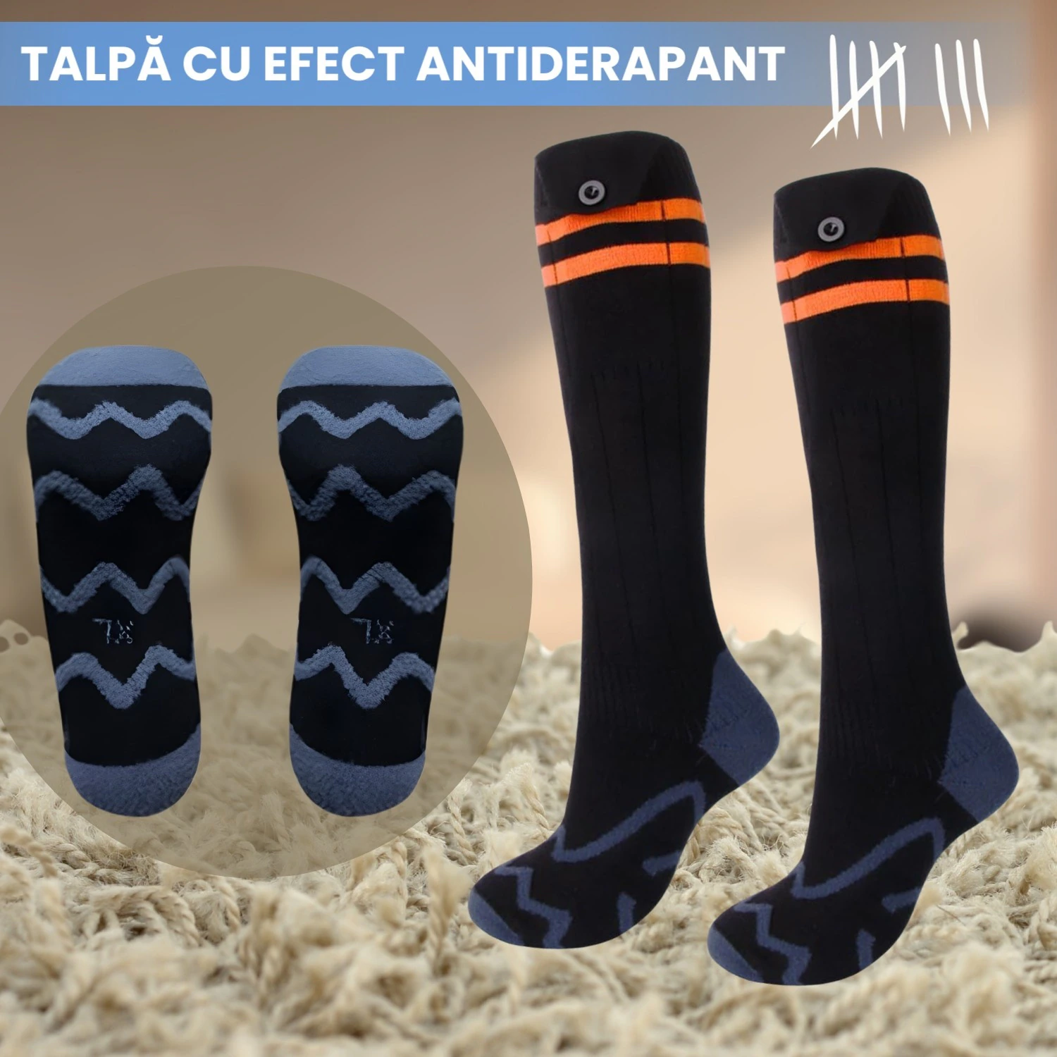 Sosete Incalzite Electric, Autonomie Extinsa 5000mAh, Pana la 9 Ore, Temperatura Reglabila, 4 Niveluri, Material Bumbac Moale, Elastic, USB Reincarcabile, Siguranta Sporita